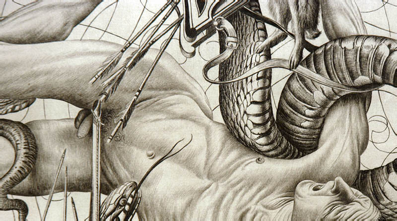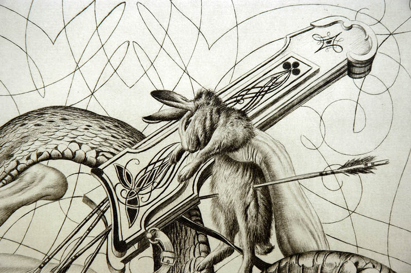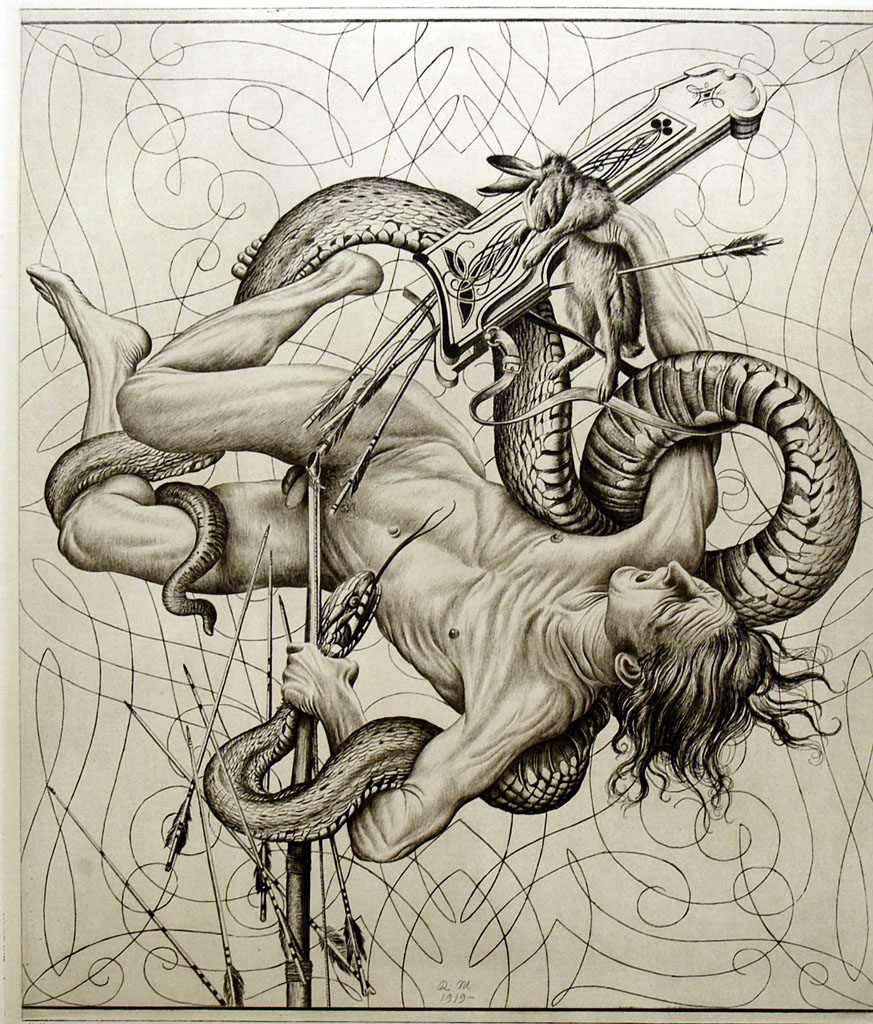 Starkes, surrealistisches Blatt voll symbolistischer und zeitlicher